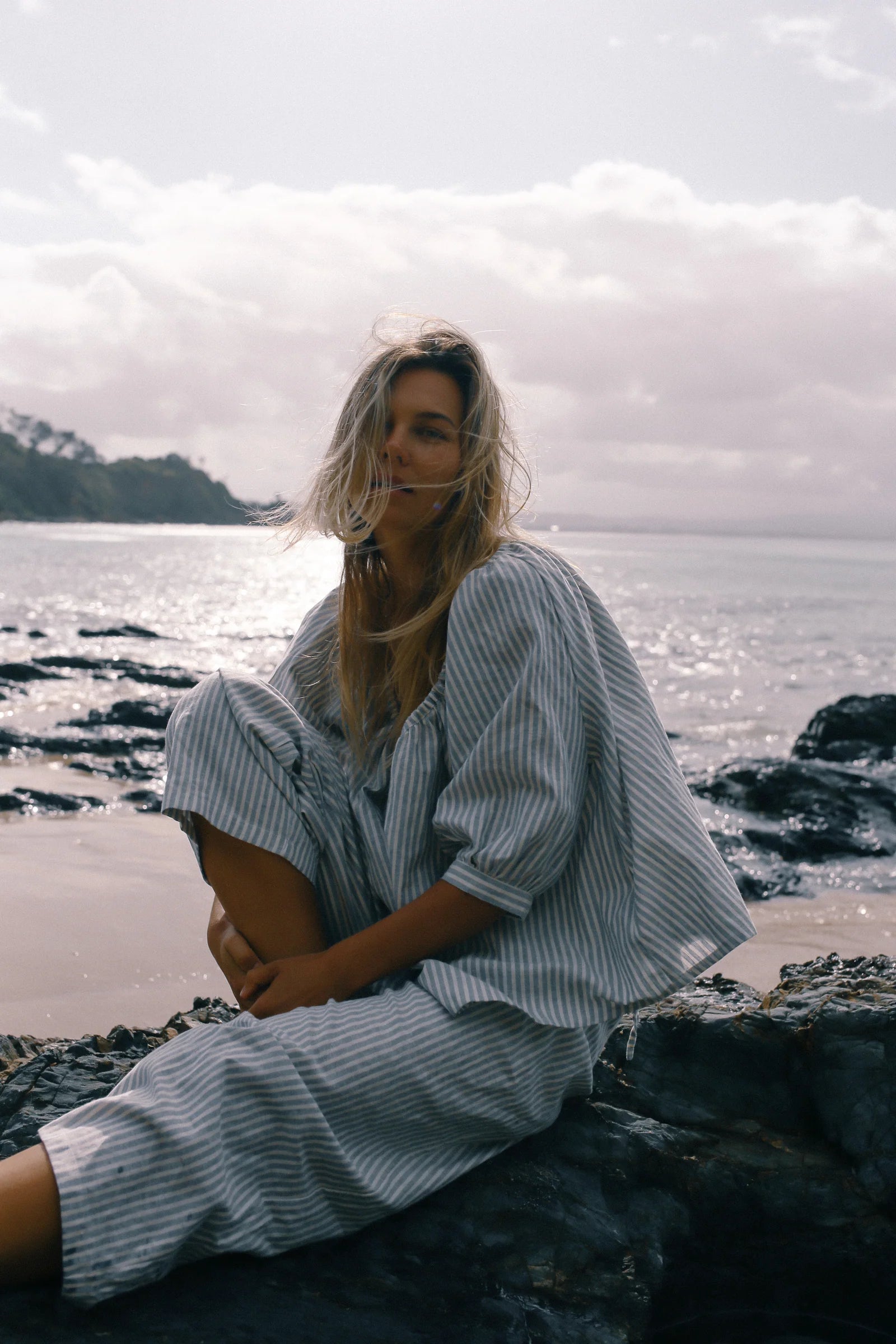 Made from an Organic Cotton and Hemp blend in a Washed Blue Stripe. The Chloe Pant is made from a breathable, soft and durable Organic Cotton and Hemp blend, making it comfortable and lightweight for warm weather.